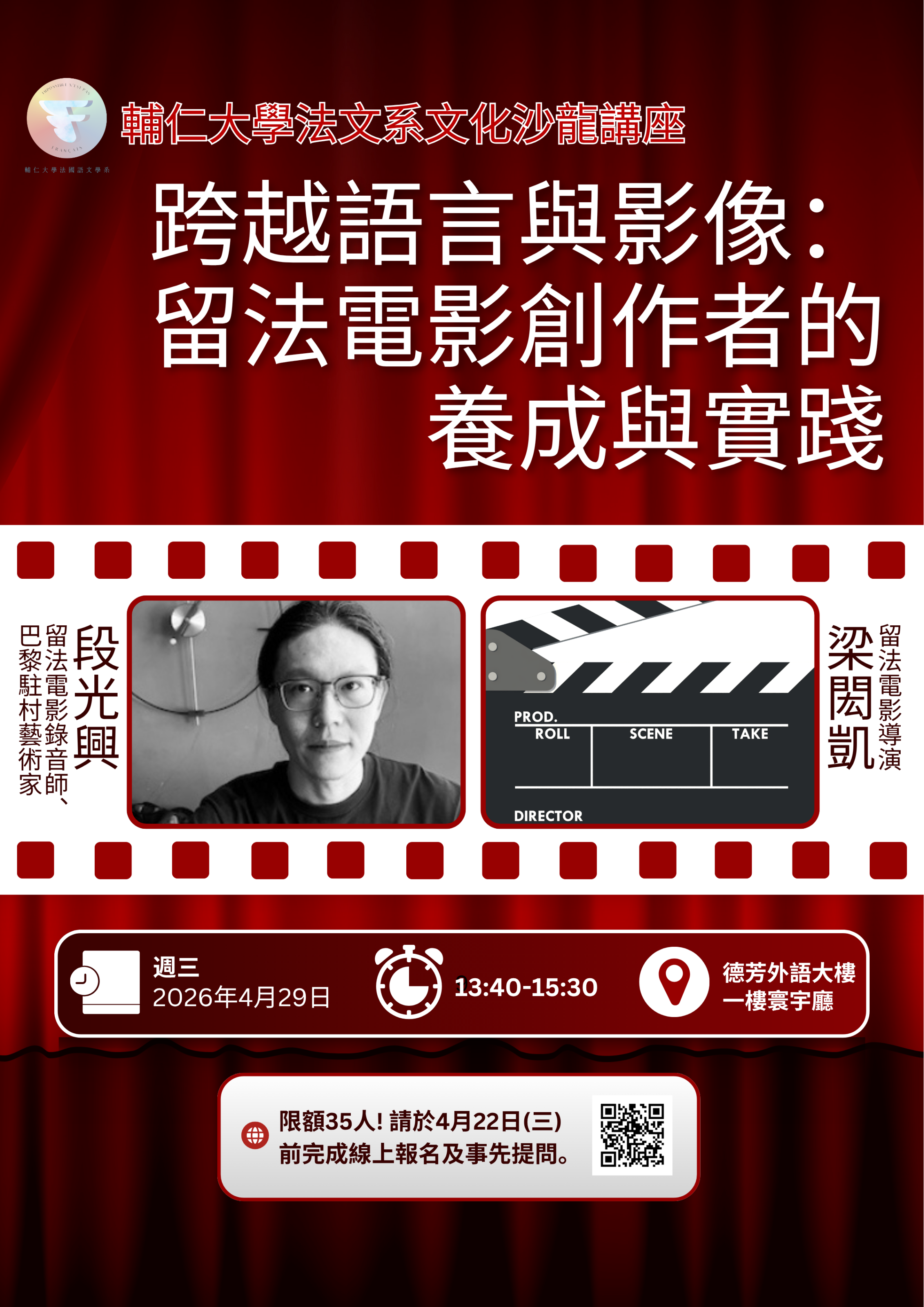 【文化沙龍講座】4/29(三) 跨越語言與影像:留法電影創作者的養成與實踐