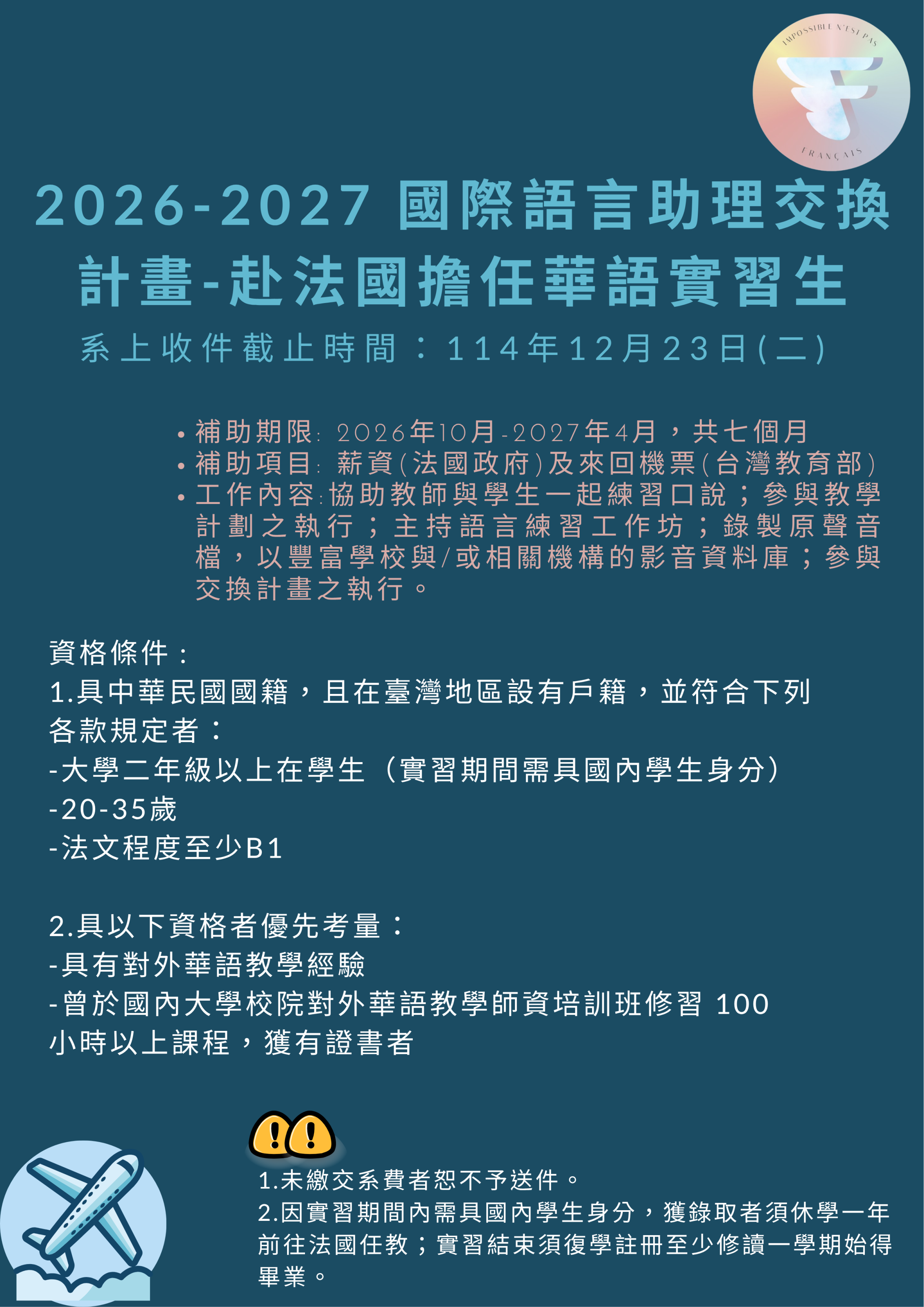 - 法文程度至少B1